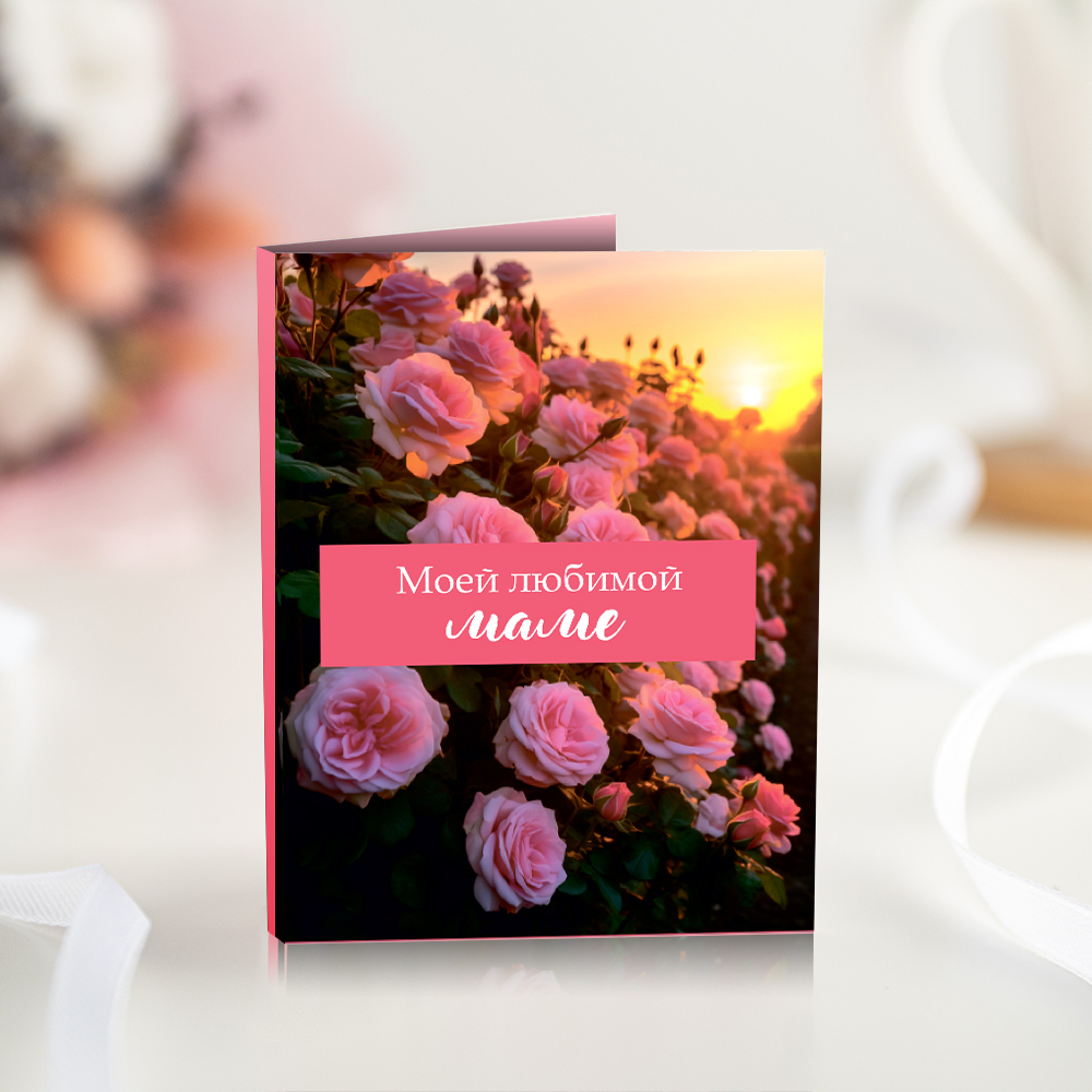 Мини-открытка "Моей любимой маме (розовые цветы)"