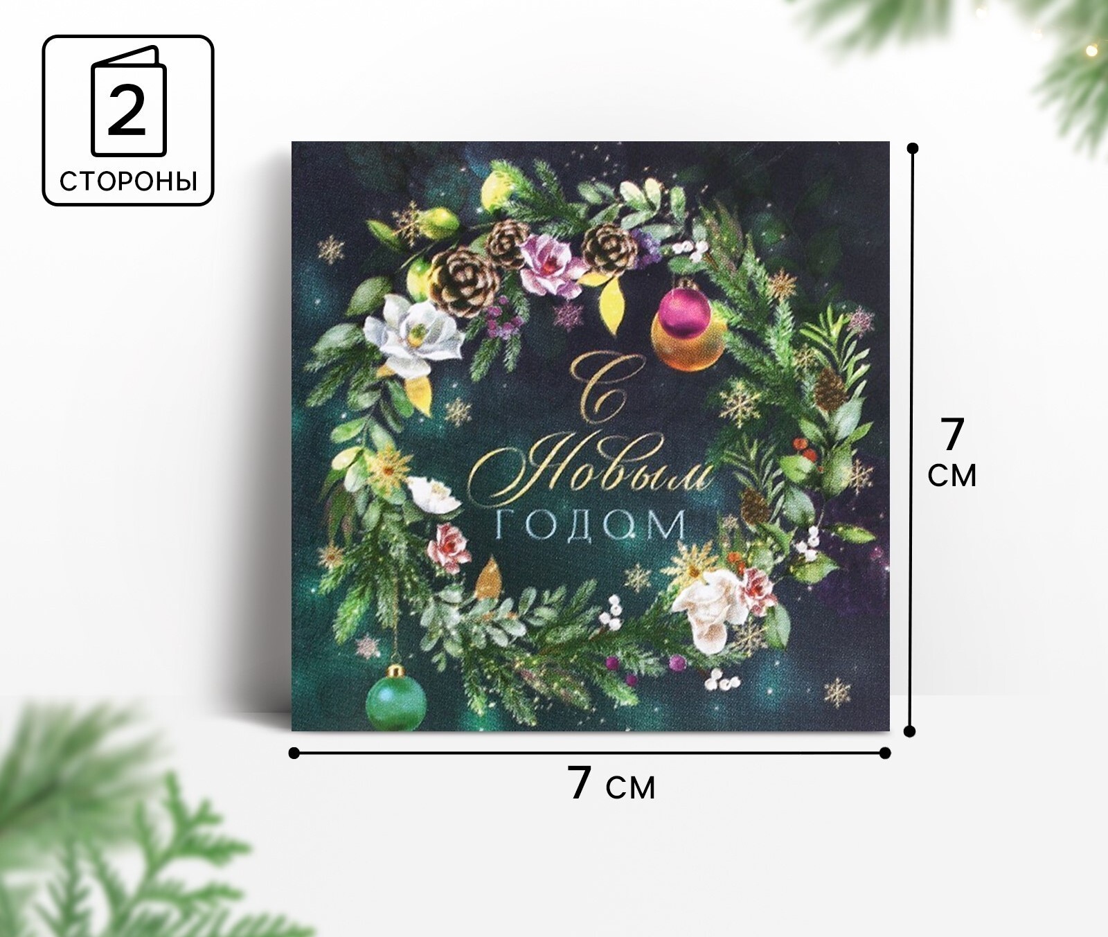 Мини-открытка «Новогодний венок», 7×7 см
