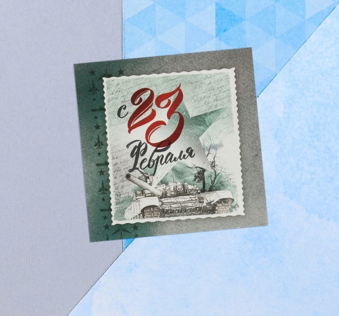 Мини-открытка «С 23 февраля», марка, 7 х 7 см