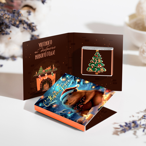 Шоколадка упакована в индивидуальную этикетку с пожеланием.