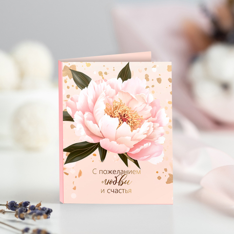 Мини-открытка "С пожеланием любви и счастья (пион)"