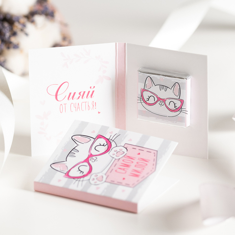 Внутри открытки - 1 шоколадка (вес 5 г., размер: 31 х 31 мм.)