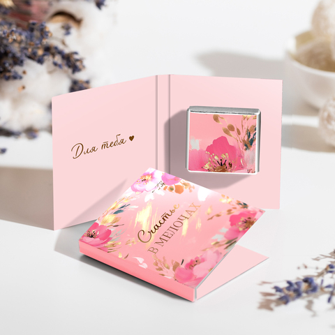 Внутри открытки - 1 шоколадка (вес 5 г., размер: 31 х 31 мм.)