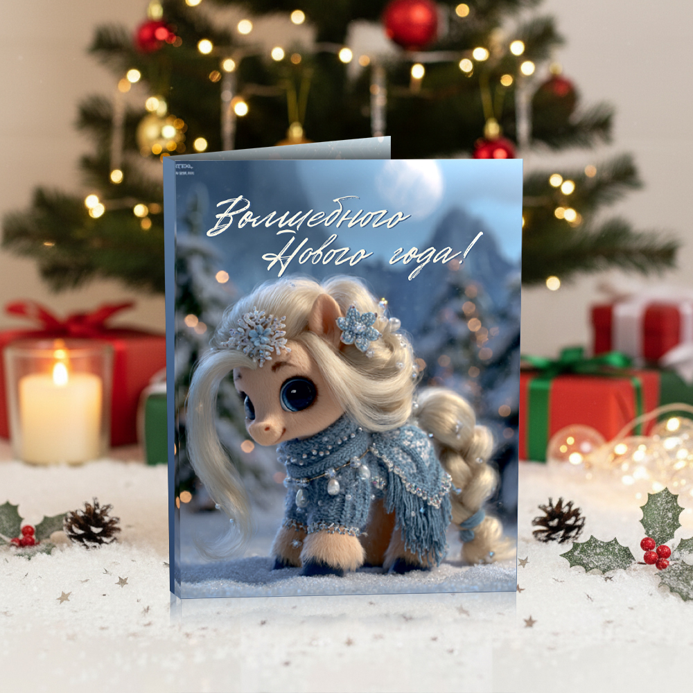 Отзывы и вопросы о товаре «★︎ Мини-открытка "Волшебного Нового года! (лошадка в голубом)»