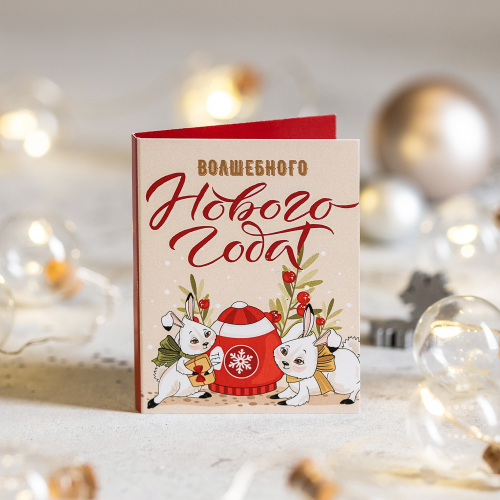Мини-открытка "Волшебного Нового года" (зайки)
