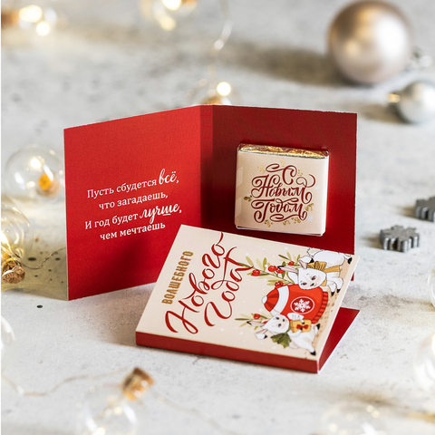 Шоколадка упакована в индивидуальную этикетку с пожеланием.