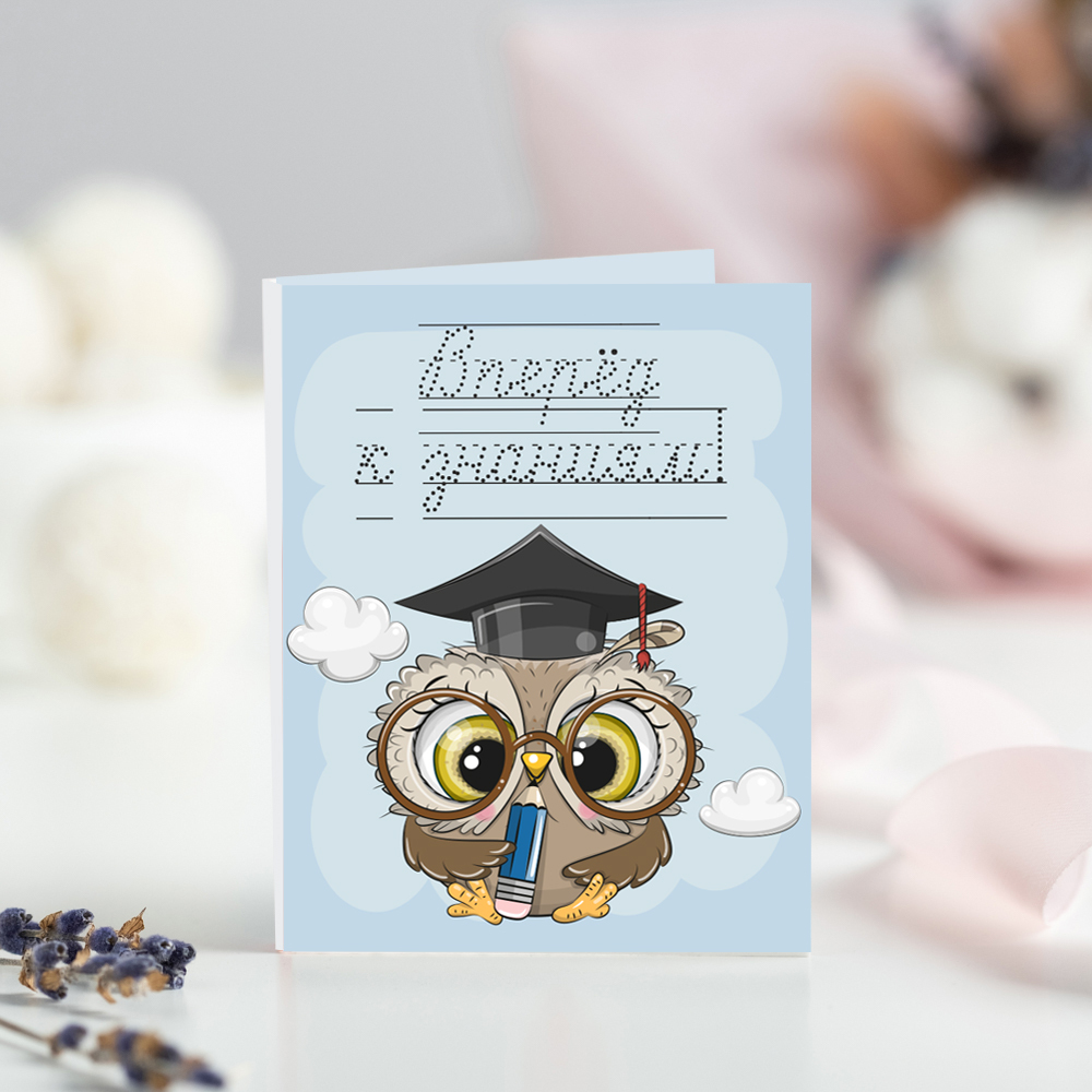 Мини-открытка "Вперёд к знаниям! (сова)"