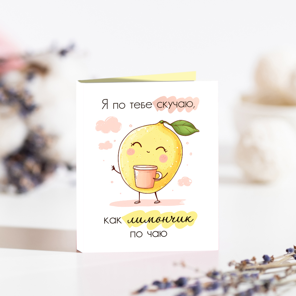 Мини-открытка "Я по тебе скучаю" (лимон)