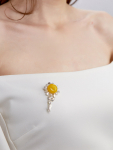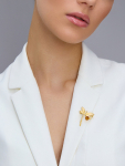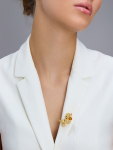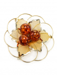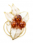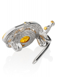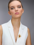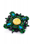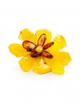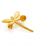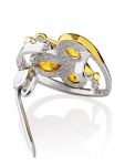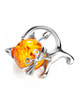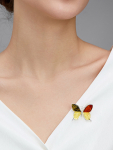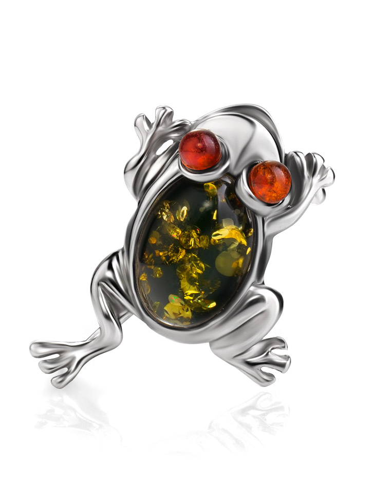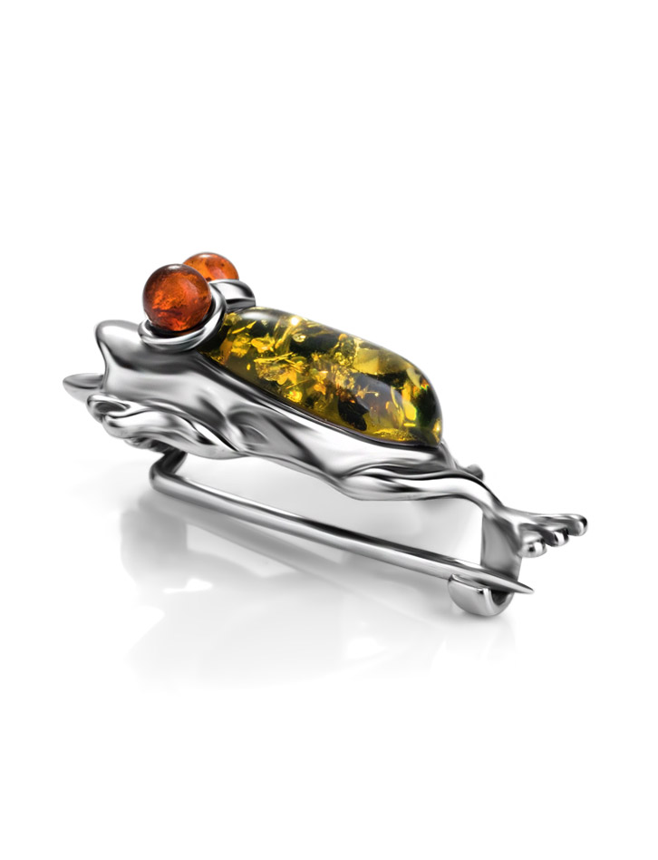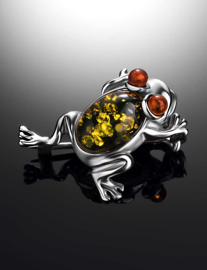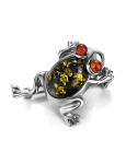 Миниатюрная брошь с зелёным янтарём «Лягушка»
