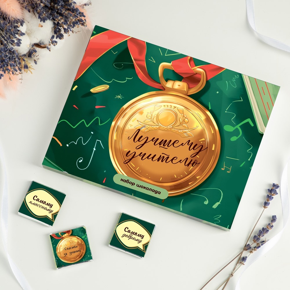 Набор 12 шоколадок "Лучшему учителю (медаль)"