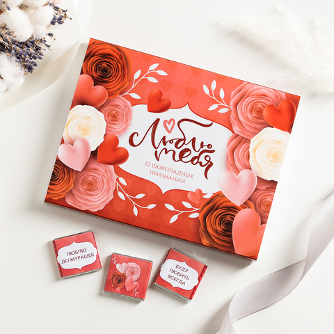 Набор 12 шоколадок "Люблю тебя. 12 шоколадных признаний"