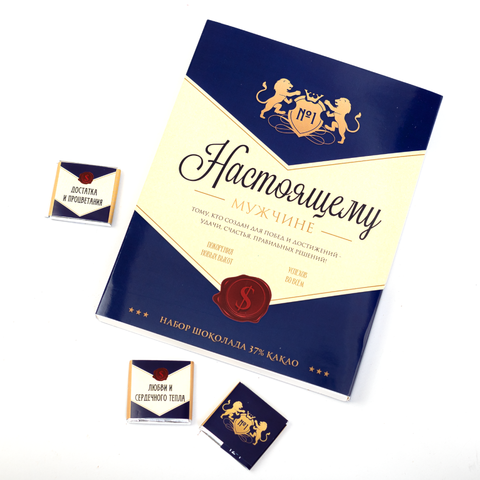 Набор 12 шоколадок "Настоящему мужчине" (синий)