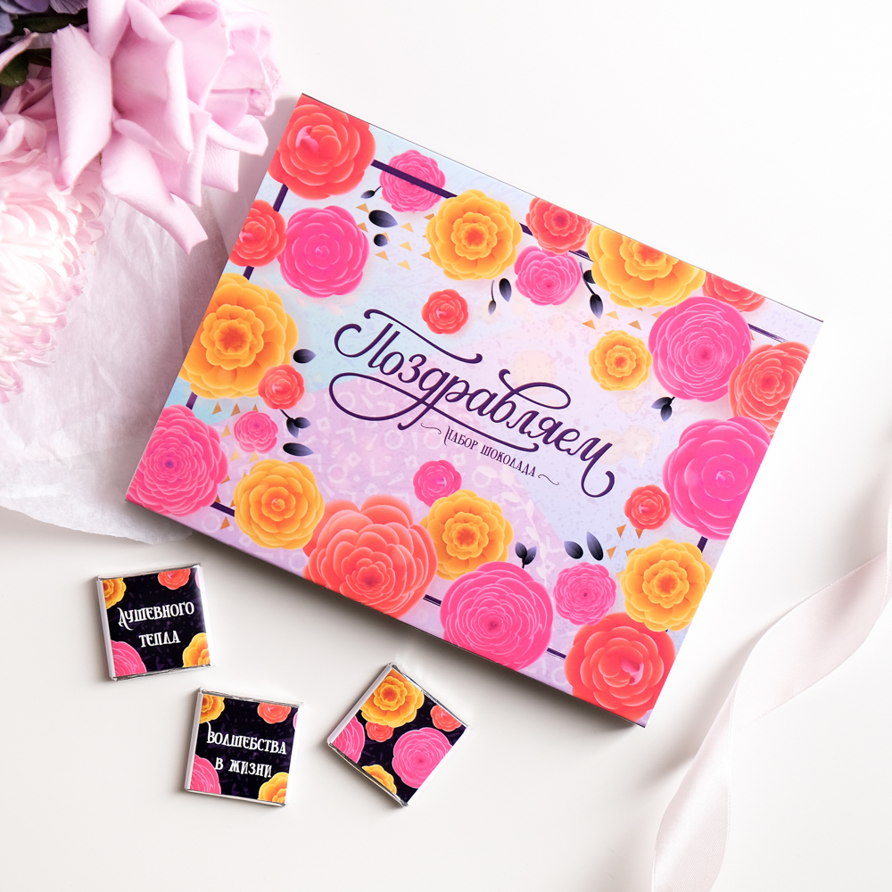 Набор 12 шоколадок "Поздравляем (яркие цветы)"