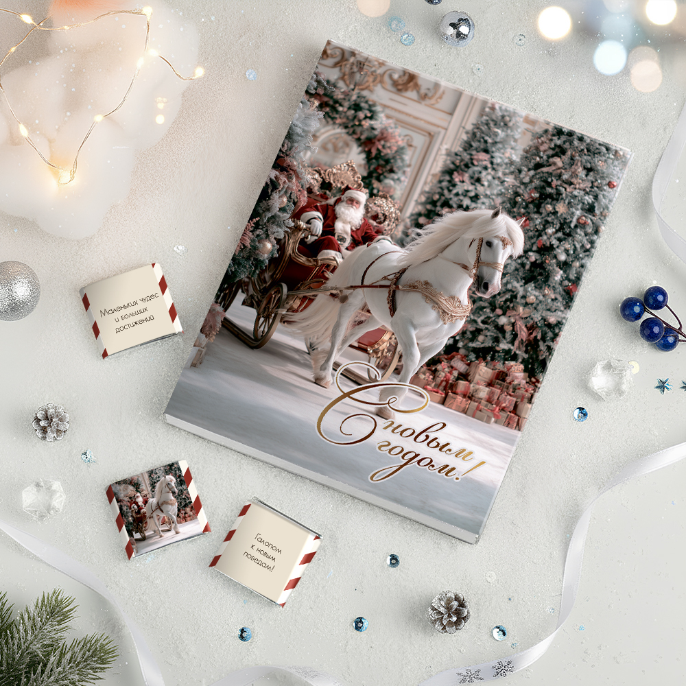 ★︎ Набор 12 шоколадок "С Новым годом (Дед мороз с белой лошадью)"