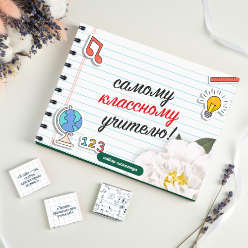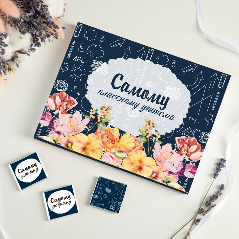 Набор 12 шоколадок "Самому классному учителю (синий с цветами)"