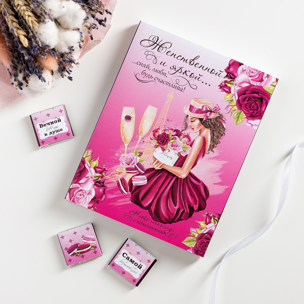 Набор 12 шоколадок "Женственной и яркой, сияй, люби, будь счастлива"