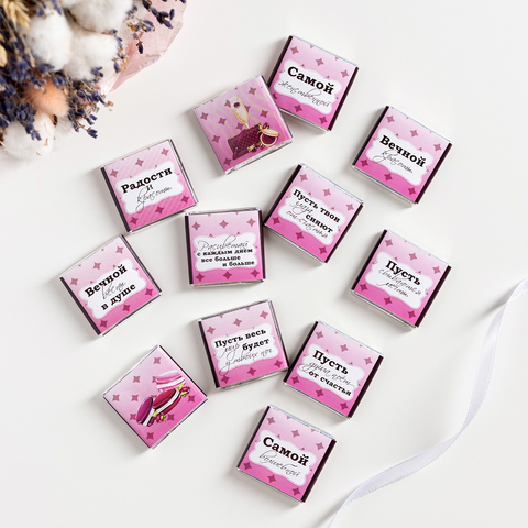 Набор 12 шоколадок "Женственной и яркой, сияй, люби, будь счастлива"