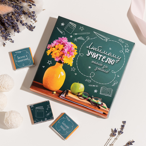 Набор 9 шоколадок "Любимому учителю. Спасибо за знания (ваза с цветами)"