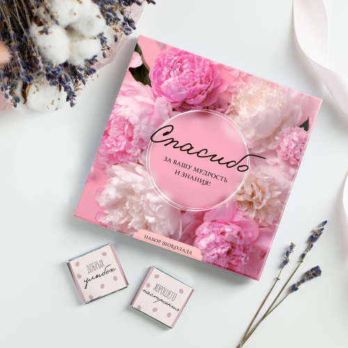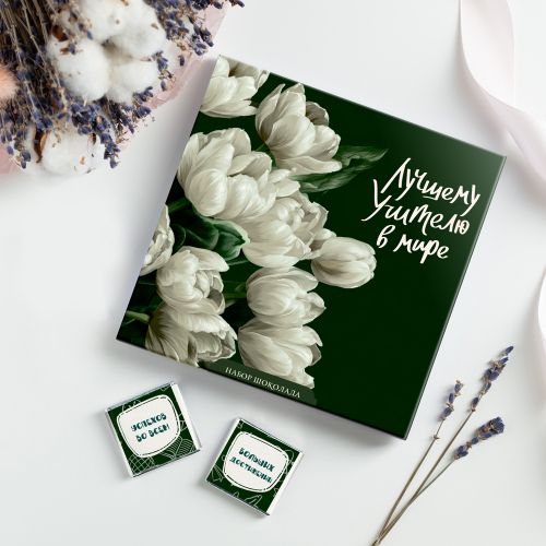 Каждая шоколадка упакована в индивидуальную этикетку с пожеланием.
