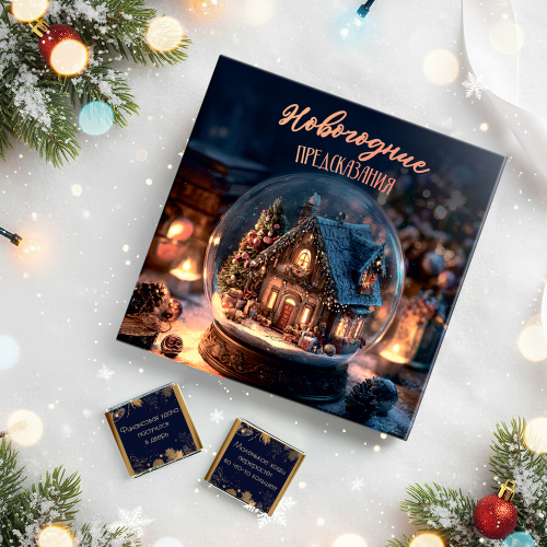 Каждая шоколадка упакована в индивидуальную этикетку с пожеланием.