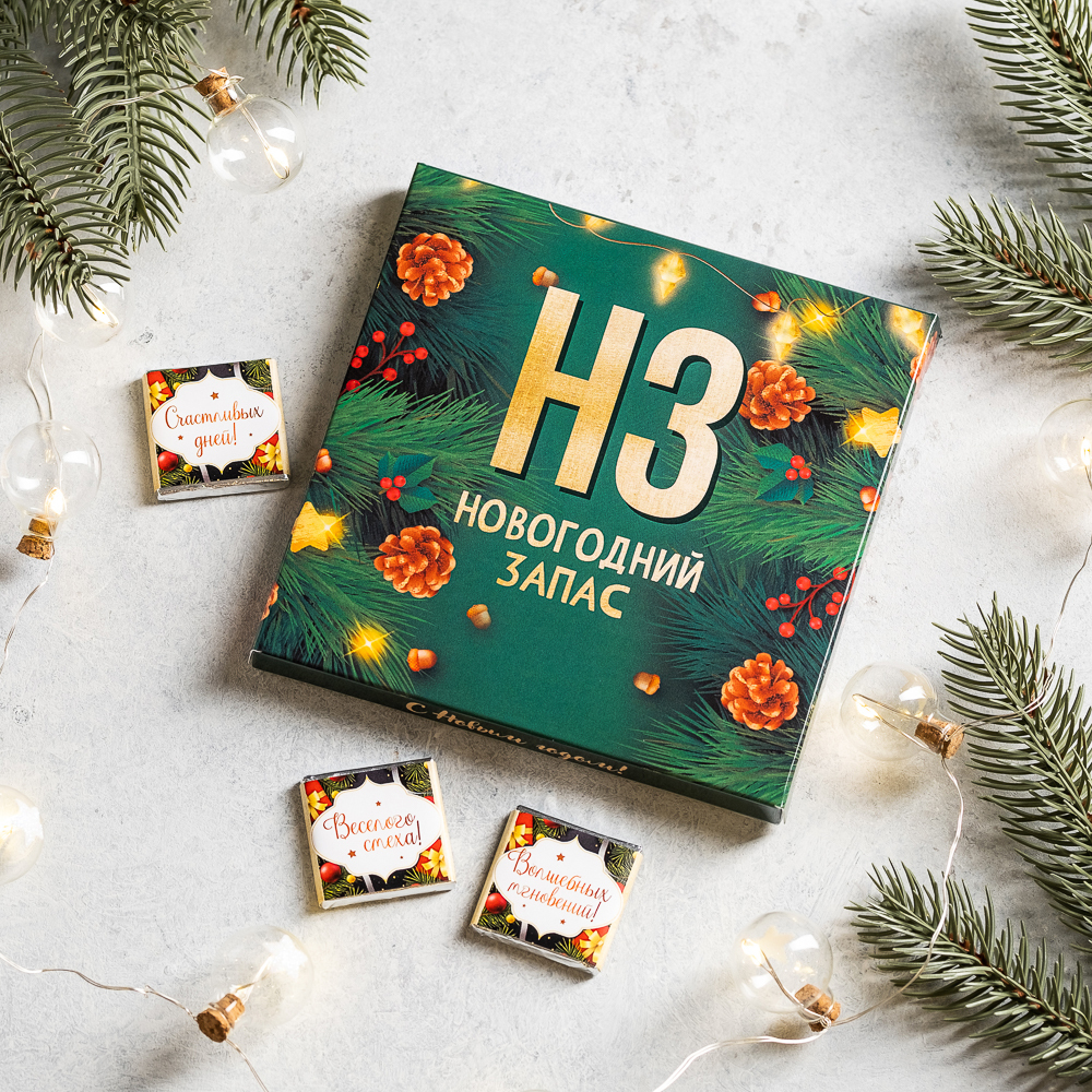 Внутри 9 шоколадок (вес: 5 гр., размер: 31 х 31 мм.)