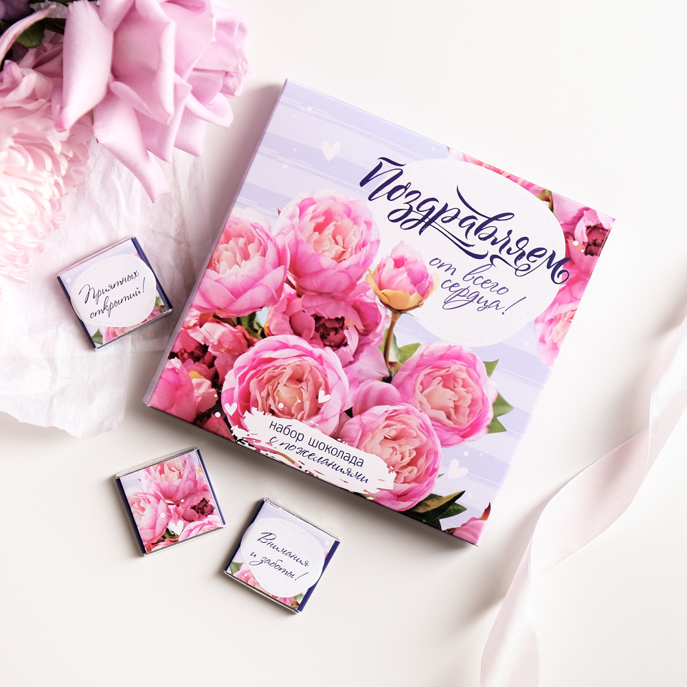 Набор 9 шоколадок "Поздравляем от всего сердца (розовые пионы)"