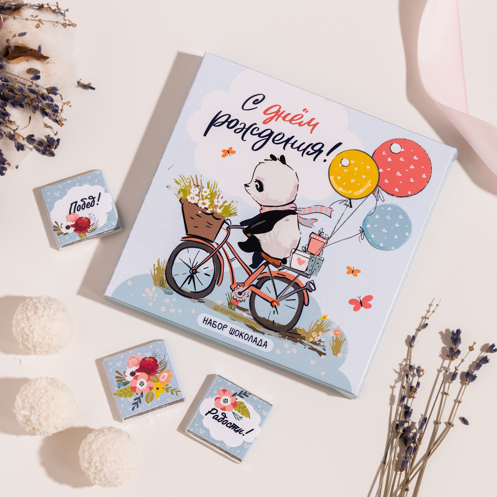 Набор 9 шоколадок "С днем рождения (панда на велосипеде)"