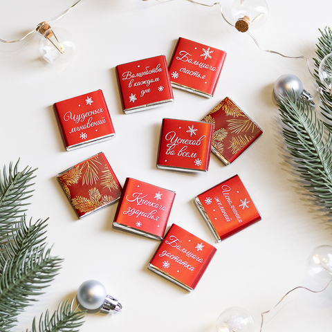 Набор 9 шоколадок "С Новым годом (красный с золотыми веточками)"
