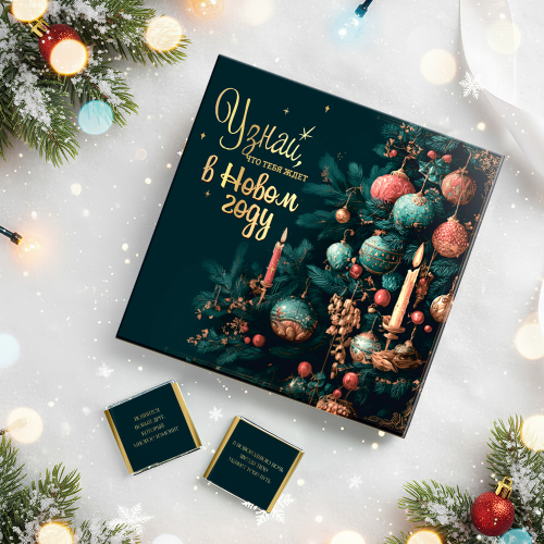 Каждая шоколадка упакована в индивидуальную этикетку с пожеланием.