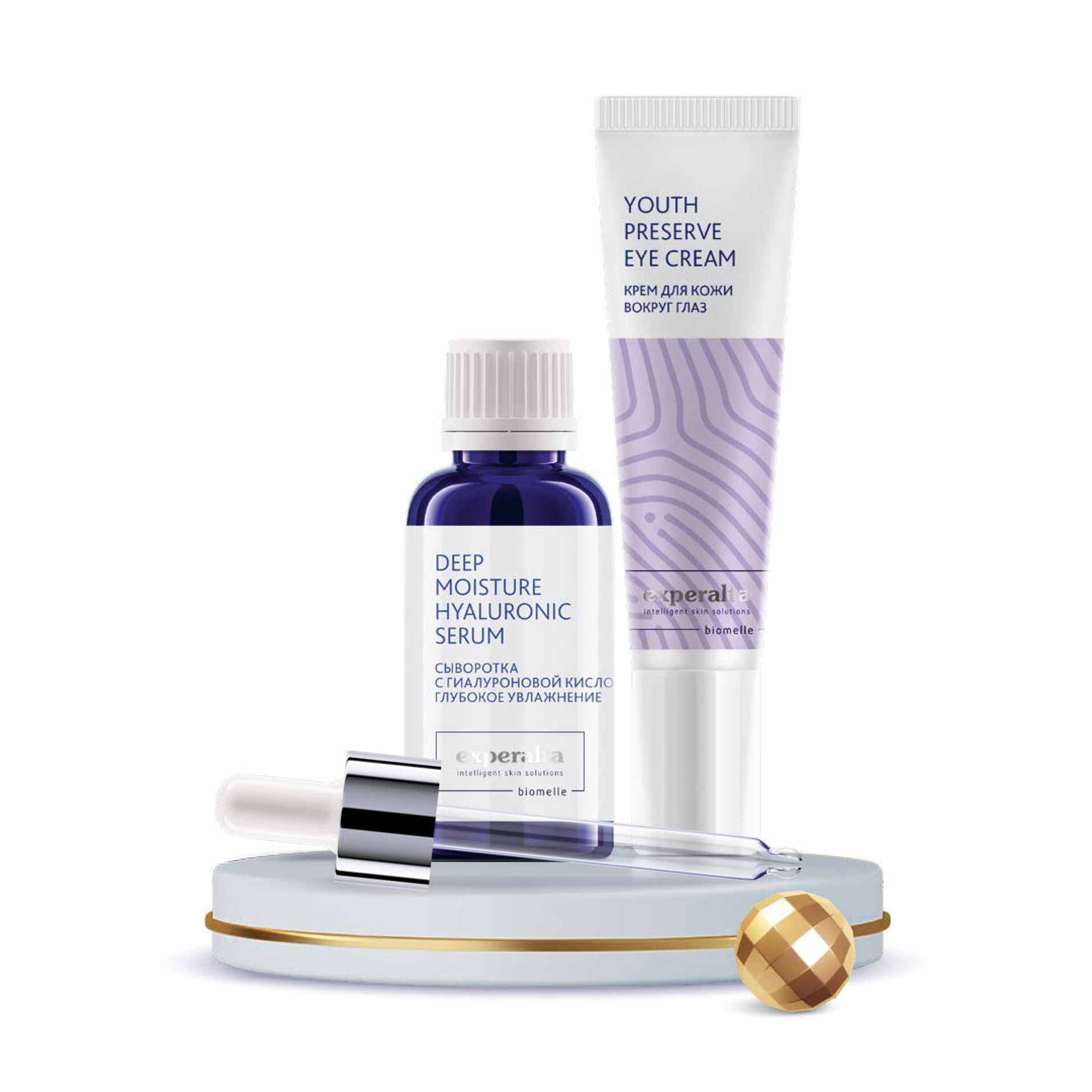 Баланс, восстановление и сияние – с набором Experalta Biomelle «Глубокое увлажнение». Крем для кожи вокруг глаз и сыворотка с пробиотиками и гиалуроновой кислотой пробуждают кожу, уменьшают морщины и выравнивают тон. Дроппер Experalta Platinum делает нанесение средства максимально точным.