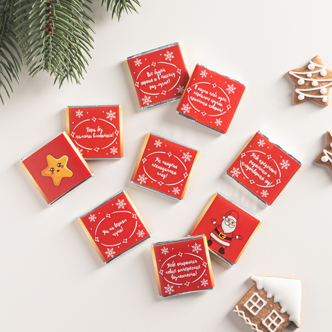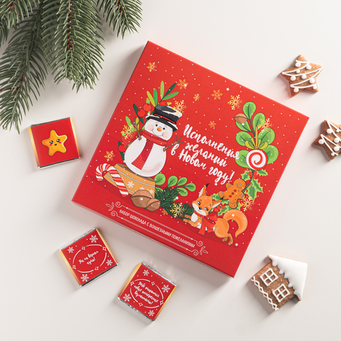 Набор из 9 шоколадок "Исполнения желаний в Новом Году (снеговик на красном фоне)"