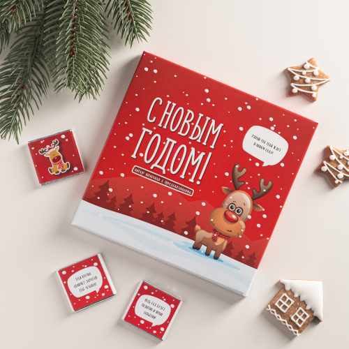 Внутри 9 шоколадок (вес: 5 гр., размер: 31 х 31 мм.)