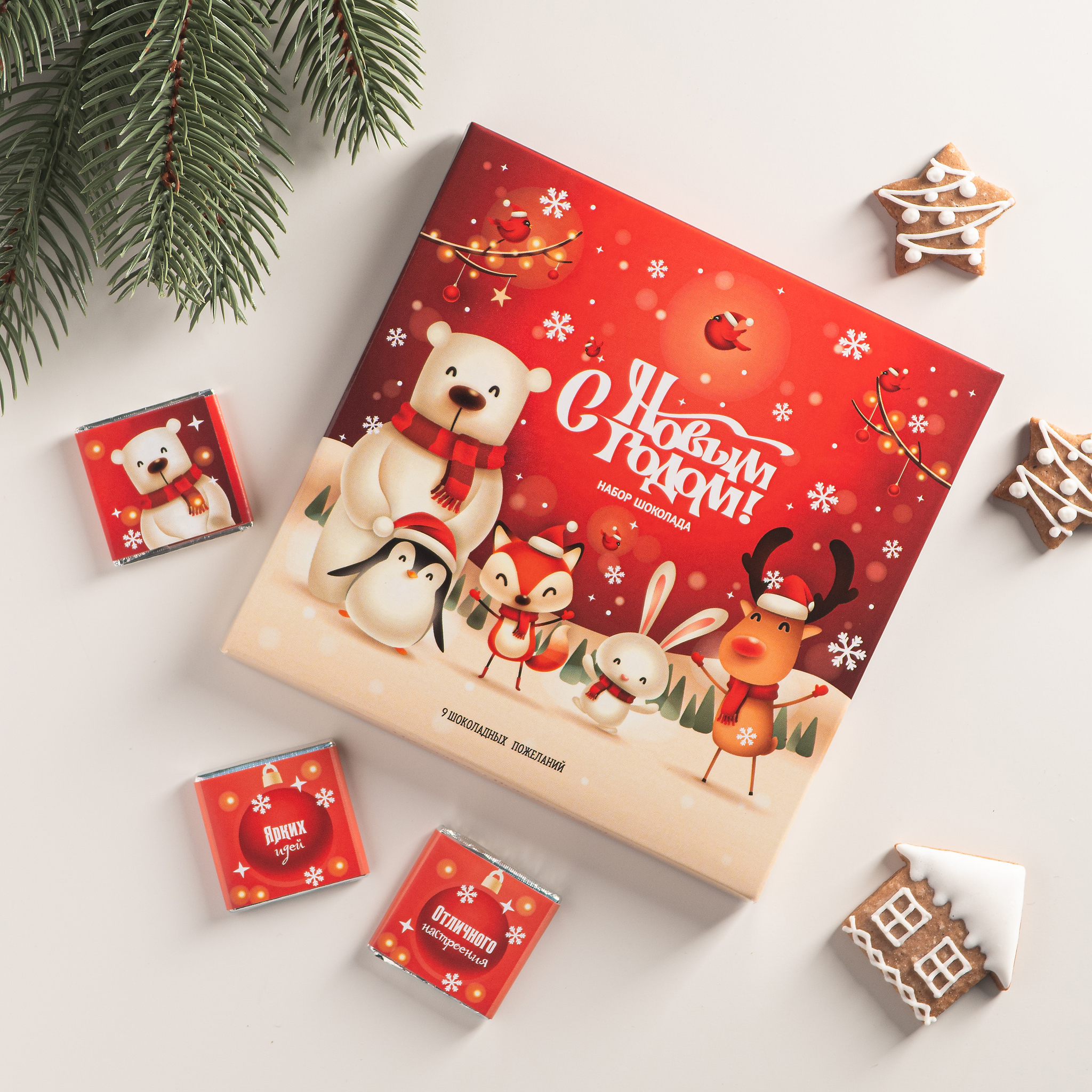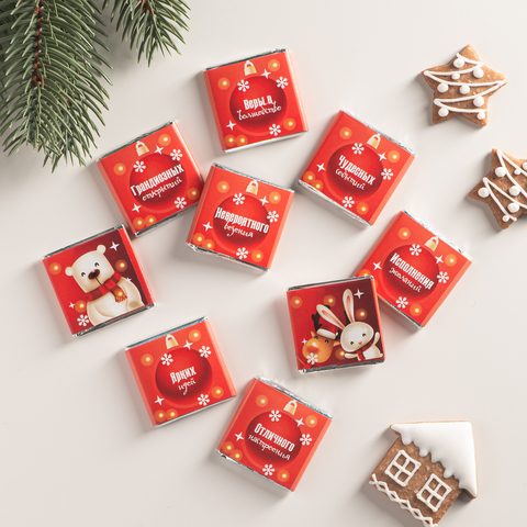 Набор из 9 шоколадок "С Новым годом (зверьки красный)"