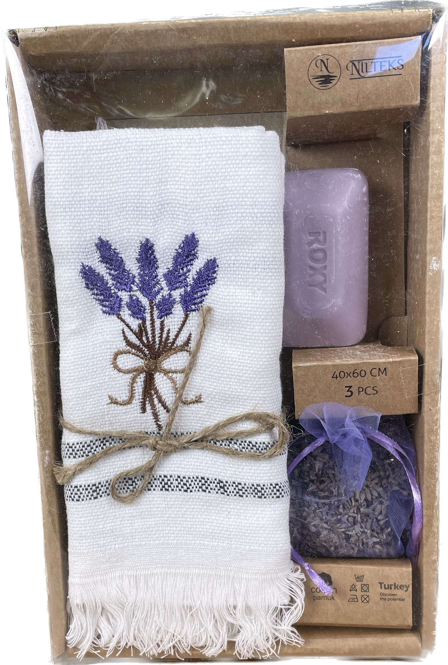 Набор льняных полотенец NILTEKS с мылом и саше ЛАВАНДА 3 пр р-р 40х60