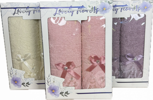 Набор махровых полотенец 110 - 749 КРУЖЕВО 2 пр р-р 70х140 и 50х90