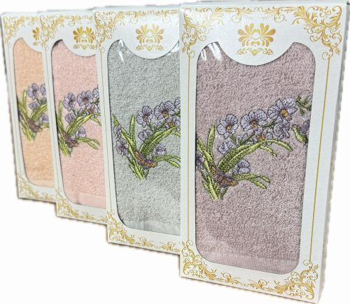 Полотенце махровое в подарочной коробке 12 - 100 ПТИЧКА КОЛИБРИ ШОКОЛАДКА 1 пр р-р 35х75