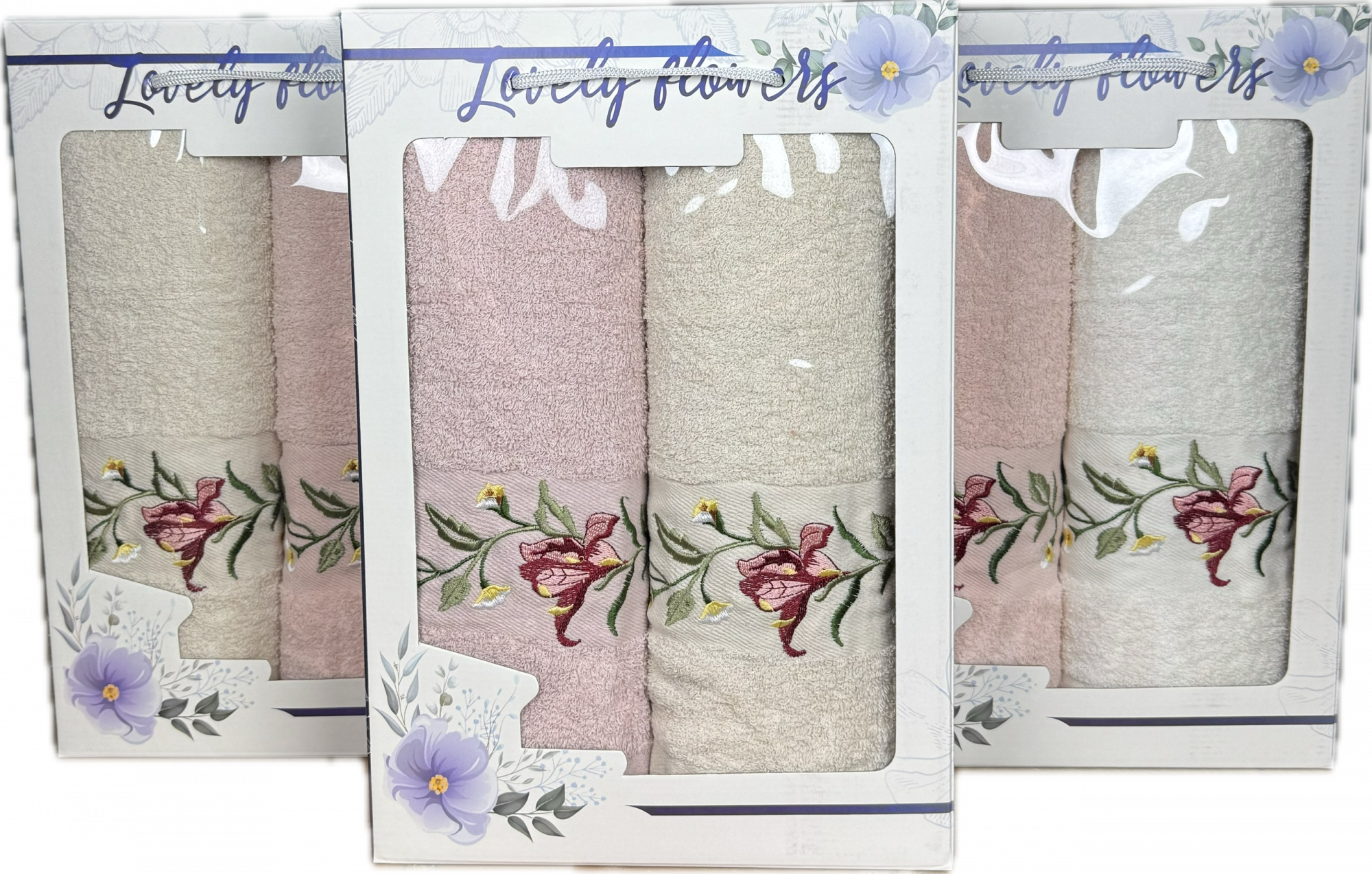 Набор махровых полотенец 12 - 110 ВЕТКА С ЦВЕТАМИ ВИД 2 2 пр в ассортименте р-р 50х90 2 шт