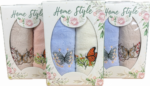 Набор полотенец и салфеток микрофибра 668 - 150 БАБОЧКИ 4 пр р-р 35х75 2 шт и 30х30 2 шт