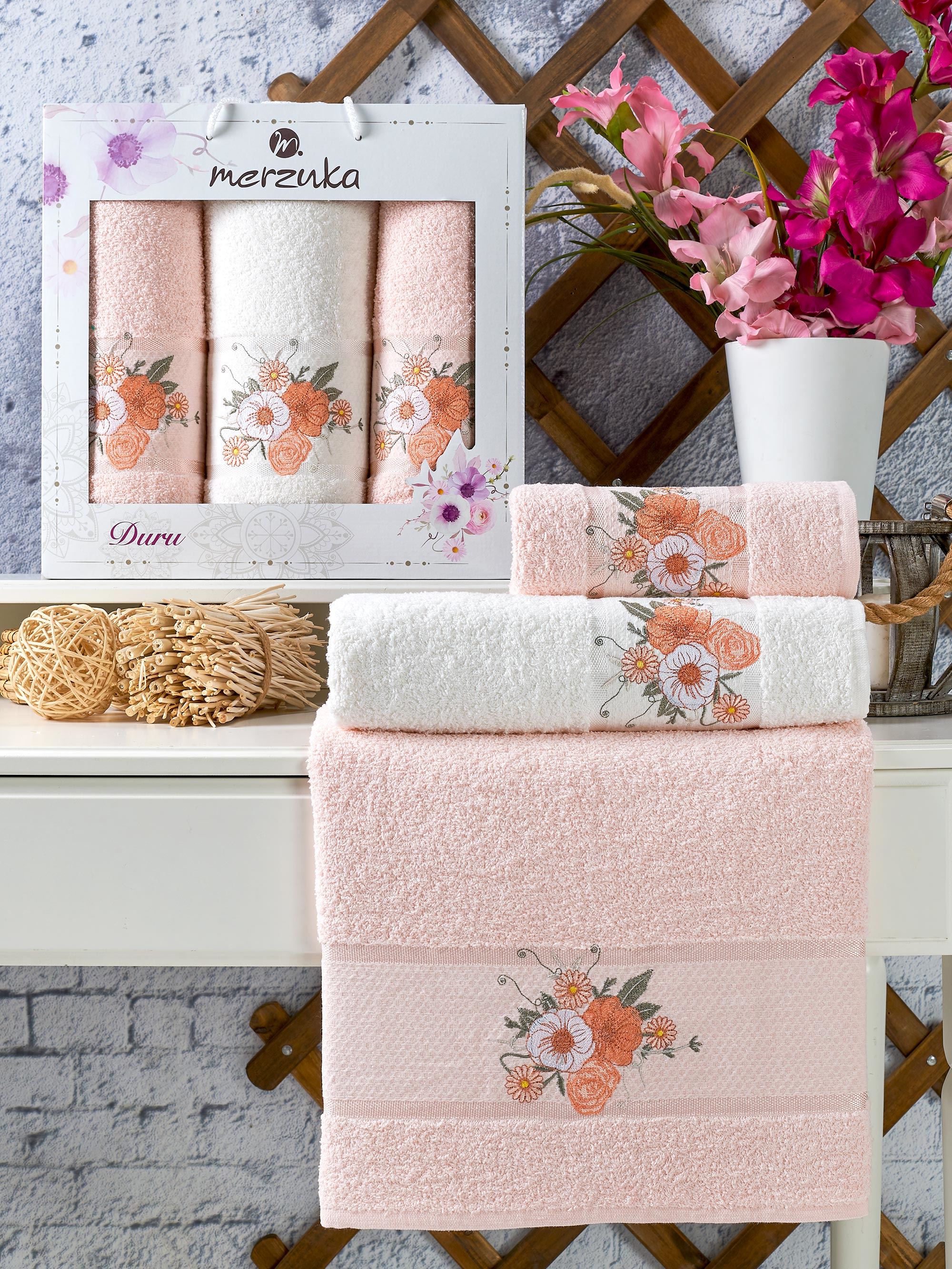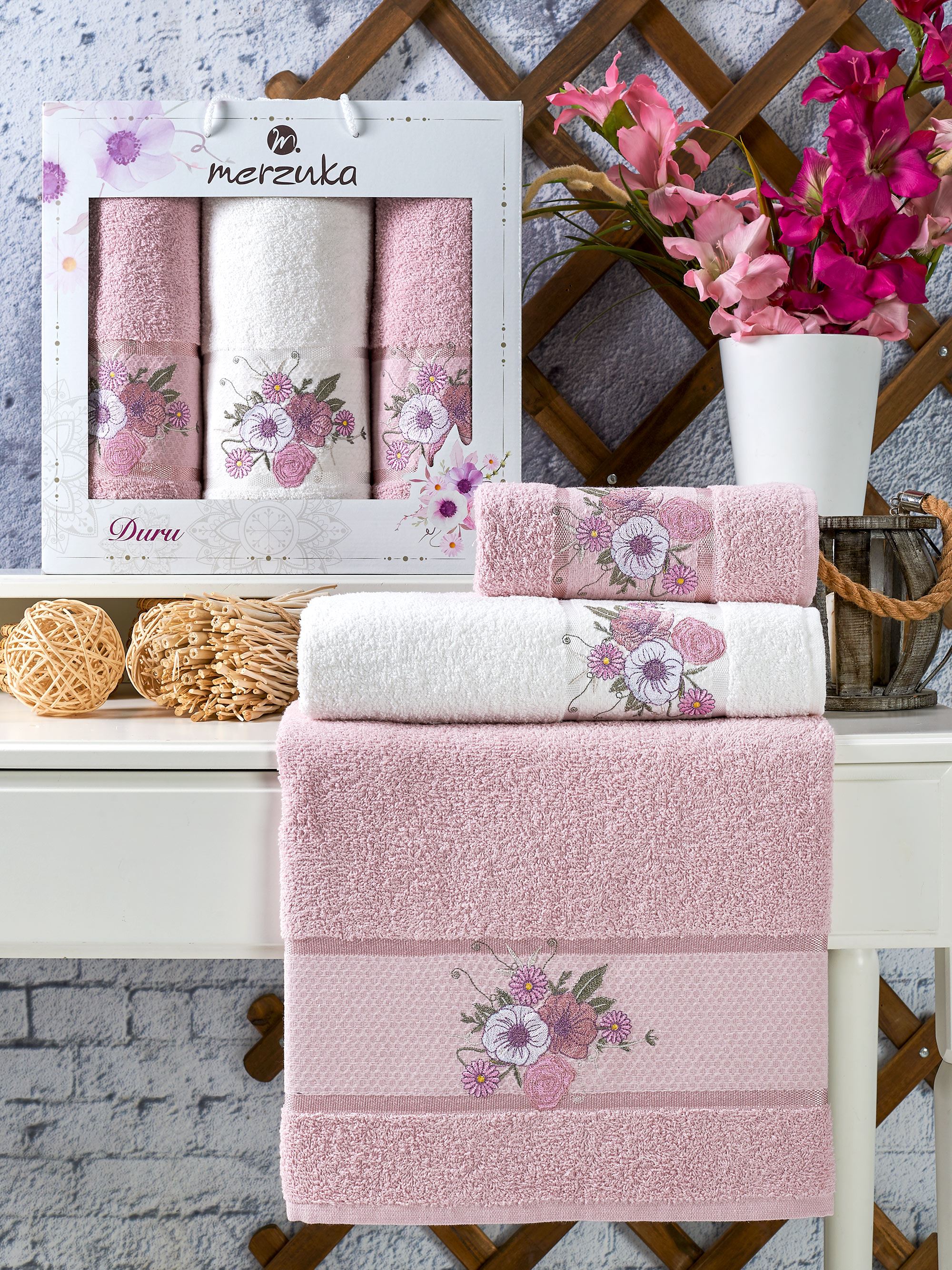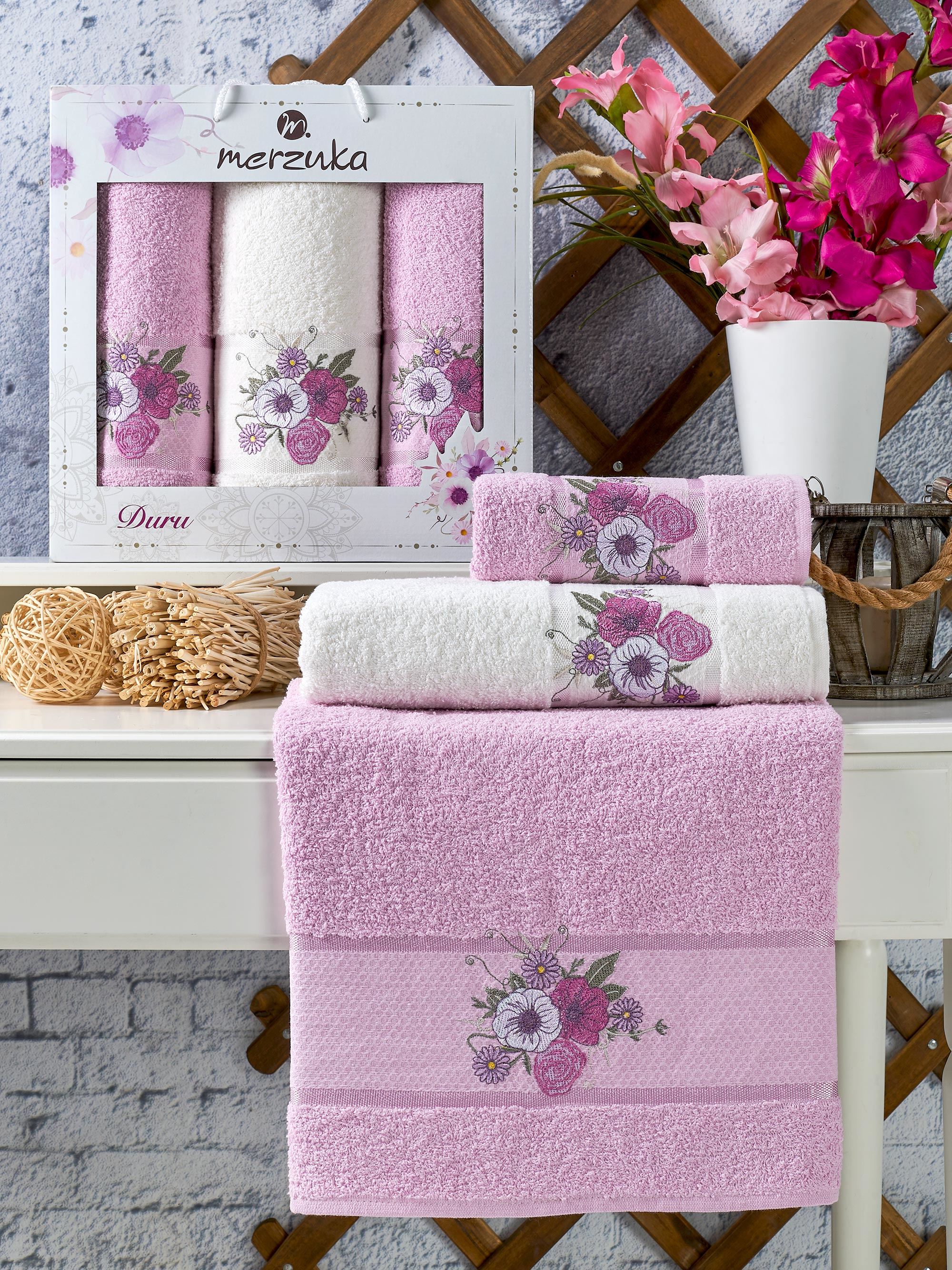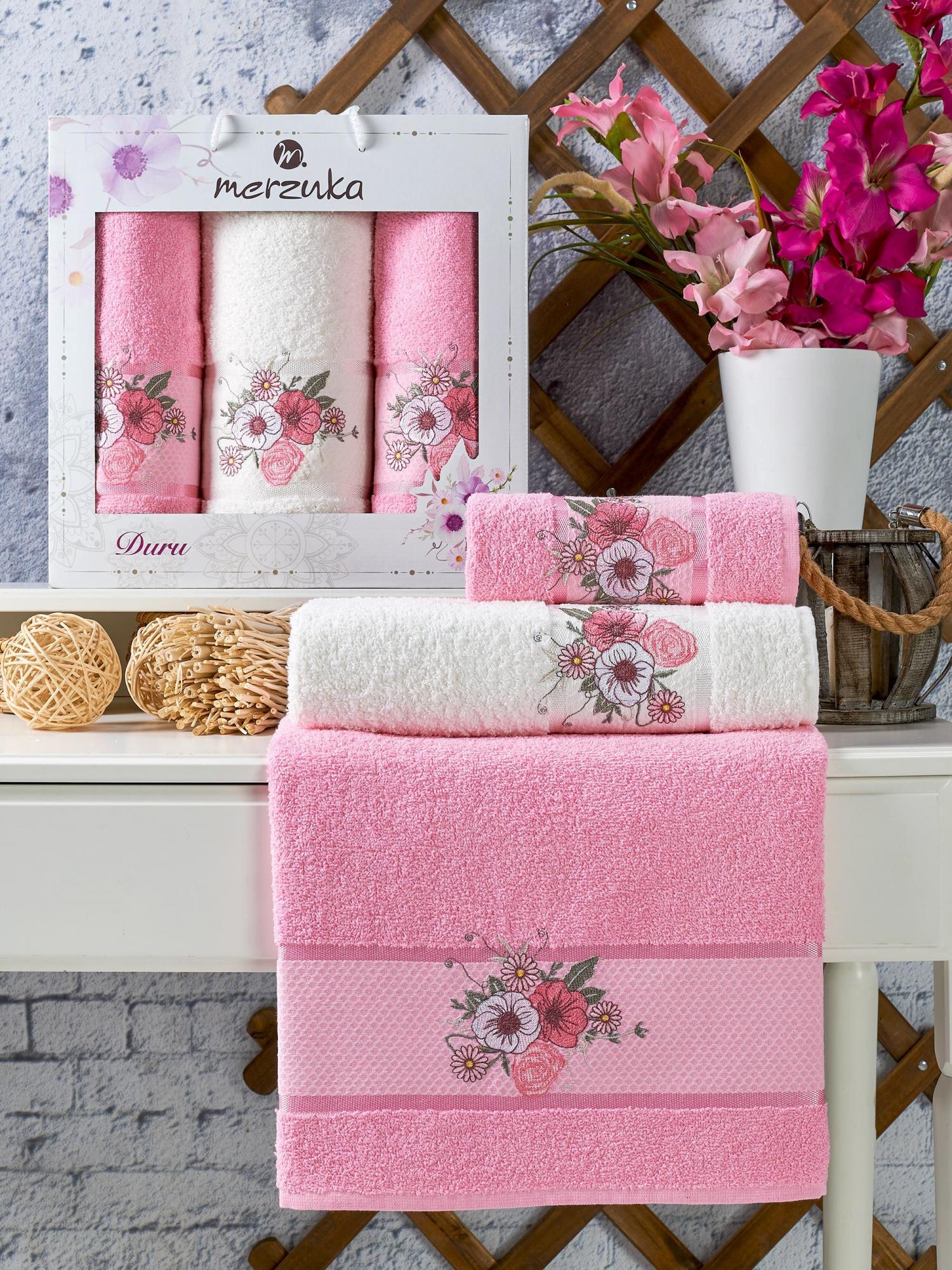 Набор полотенец MERZUKA DURU 3 пр в ассортименте р-р 70х140 1 шт и 50х90 2 шт