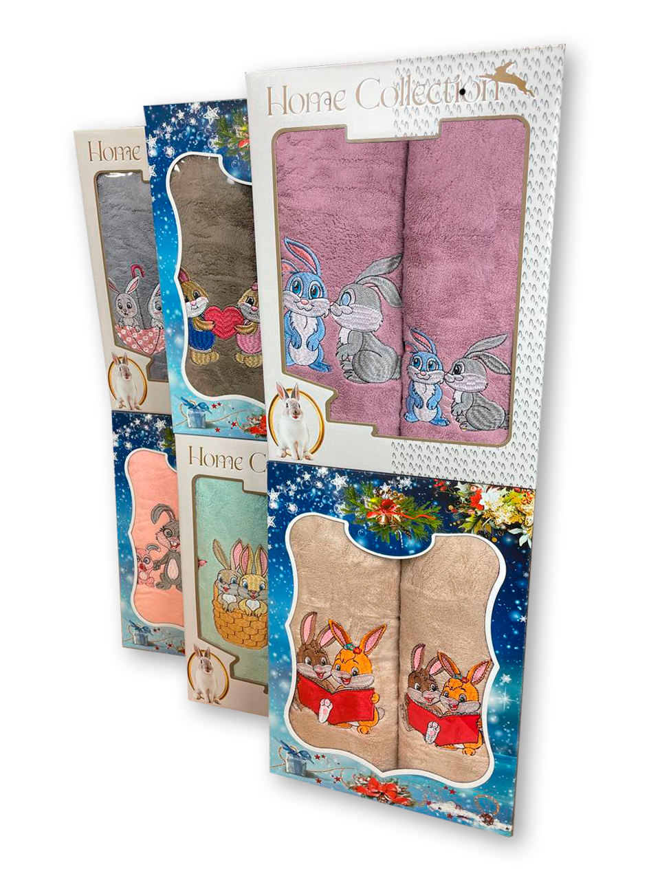 Набор полотенец микрофибра ЗАЙКИ РЕЗНАЯ КАЙМА в ассортименте 2 пр р-р 70х140 и 50х90