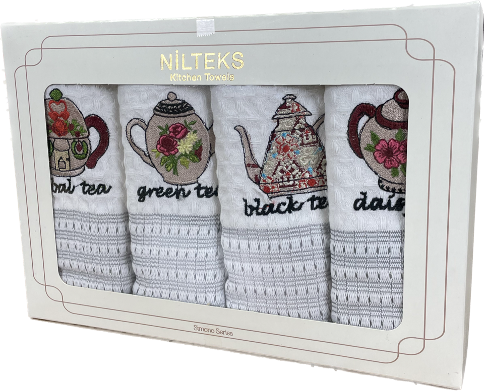 Набор вафельных полотенец NILTEKS SIMONO SERIES ЧАЙНИКИ 4 пр р-р 50х70