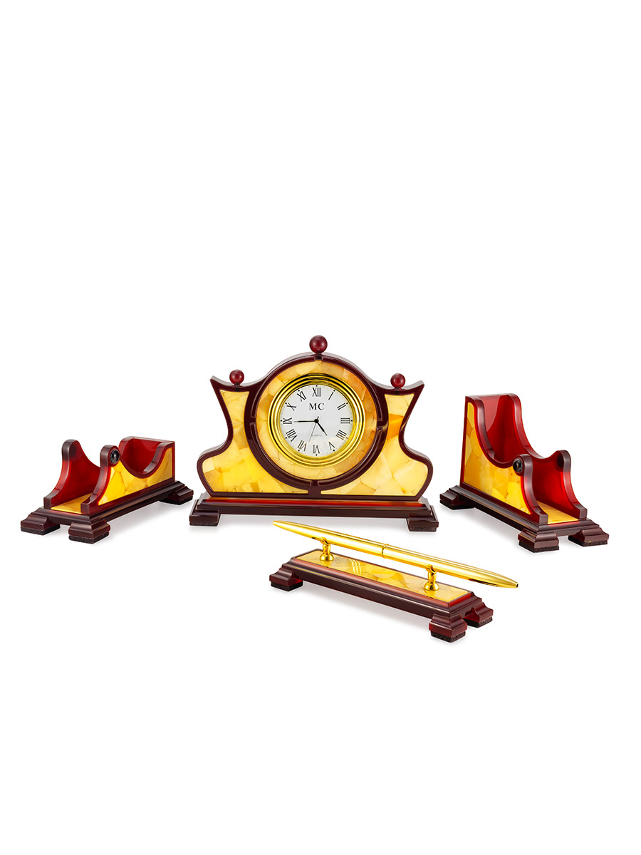 Настольный письменный прибор из 4 предметов «Штандарт» из натурального янтаря