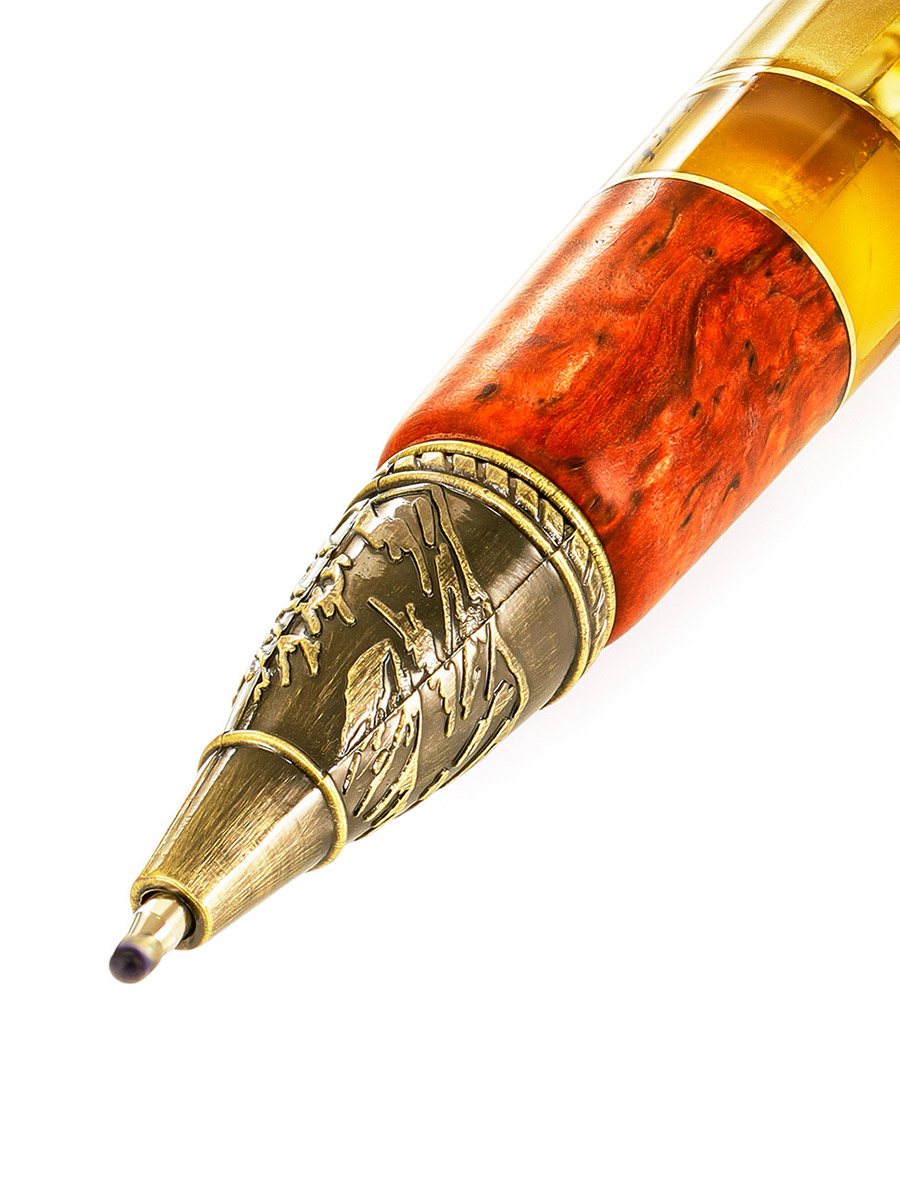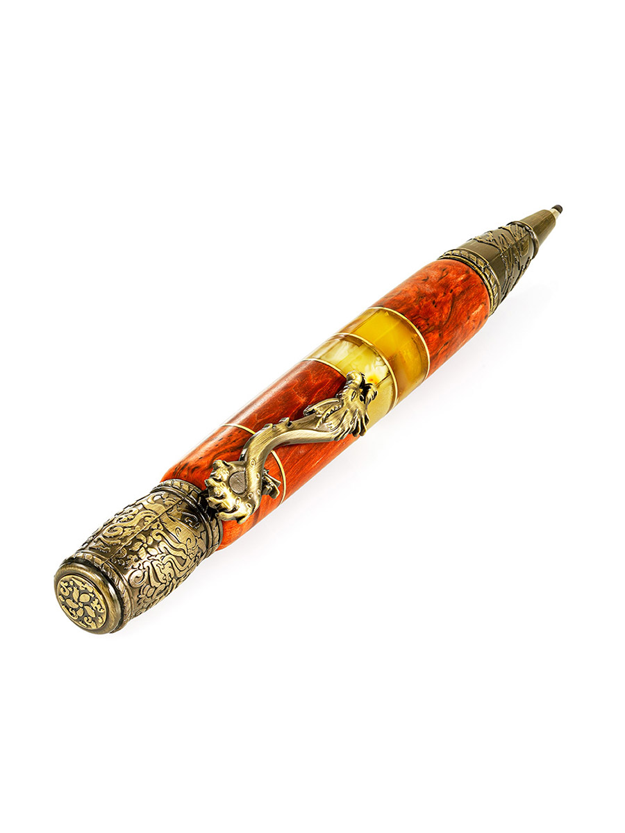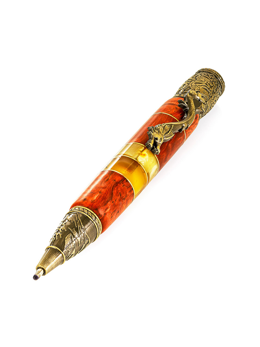 Необычная ручка с тонированным деревом и натуральным янтарём «Дракон»