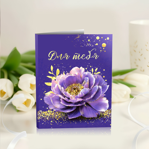 новинка Мини-открытка "Для тебя (фиолетовый цветок с золотом)"