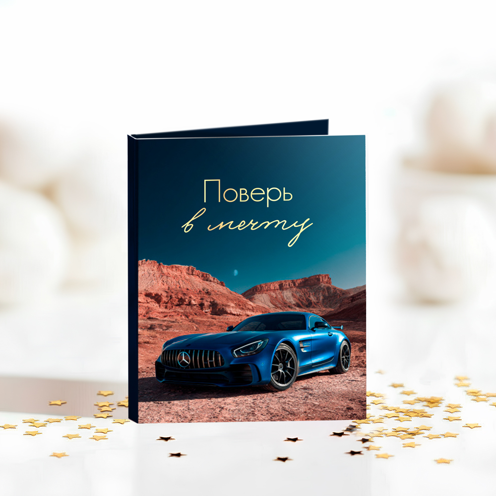новинка Мини-открытка "Поверь в мечту (мерседес синий)"