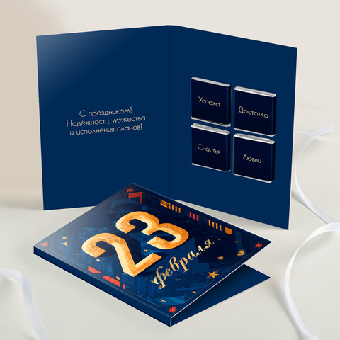 новинка Открытка 4 шоколадки "23 февраля (синяя)"