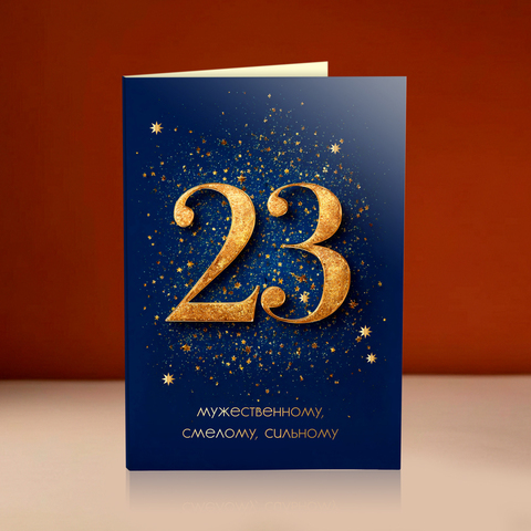 новинка Открытка 4 шоколадки "23 (золотые цифры на синем)"