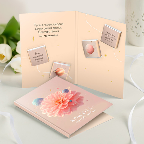 новинка Открытка 4 шоколадки "Красота - это ты (цветок с планетами)"