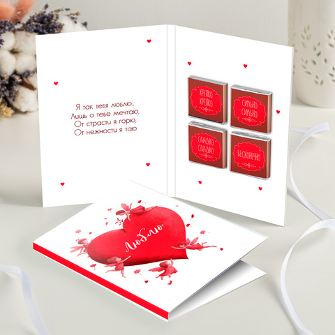 новинка Открытка 4 шоколадки "Люблю (большое сердце с ангелами)"