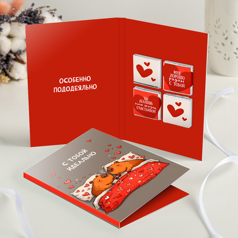 новинка Открытка 4 шоколадки "С тобой идеально (капибары)"